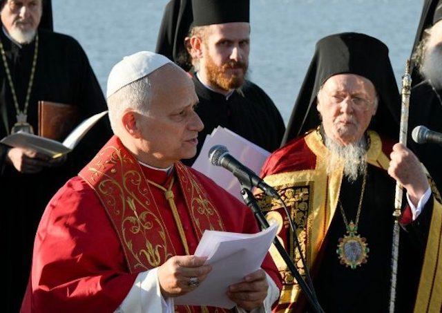 Pred niekoľkými dňami som sa vrátil zo svojej prvej apoštolskej cesty do Turecka a Libanonu. S milovaným bratom Bartolomejom, ekumenickým patriarchom Konštantínopolu, a zástupcami iných kresťanských vyznaní sme sa stretli, aby sme sa spoločne modlili v Izniku, starovekej Niceji, kde sa pred 1700 rokmi konal prvý ekumenický koncil. Práve dnes si pripomíname 60. výročie spoločného vyhlásenia Pavla VI. a patriarchu Athenagora, ktoré ukončilo vzájomné exkomunikácie. Ďakujme Bohu a obnovme svoje odhodlanie na ceste k plnej viditeľnej jednote všetkých kresťanov. Bolo mi radosťou, že som sa v Turecku mohol stretnúť s katolíckou komunitou: prostredníctvom trpezlivého dialógu a služby trpiacim svedčí o evanjeliu lásky a Božej logike, ktorá sa prejavuje v malosti.