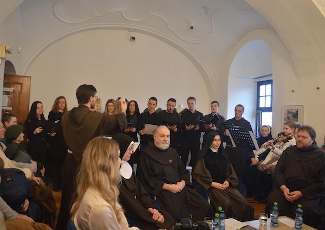 Podujatie otvorila hudobná časť – schóla sv. Jakuba z Trnavy pod vedením Lenky Antalovej, s klavírnym doprovodom brata Michala Malčovského, ktorá účastníkov sprevádzala výberom hudobných diel františkánskych autorov z 18. storočia.